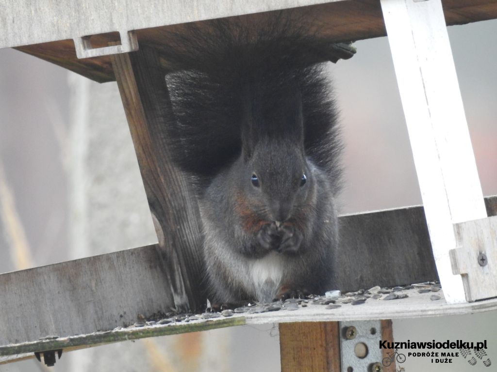 Oprócz wiewiórki karmnik odwiedziły nie tylko sikorki. więcej